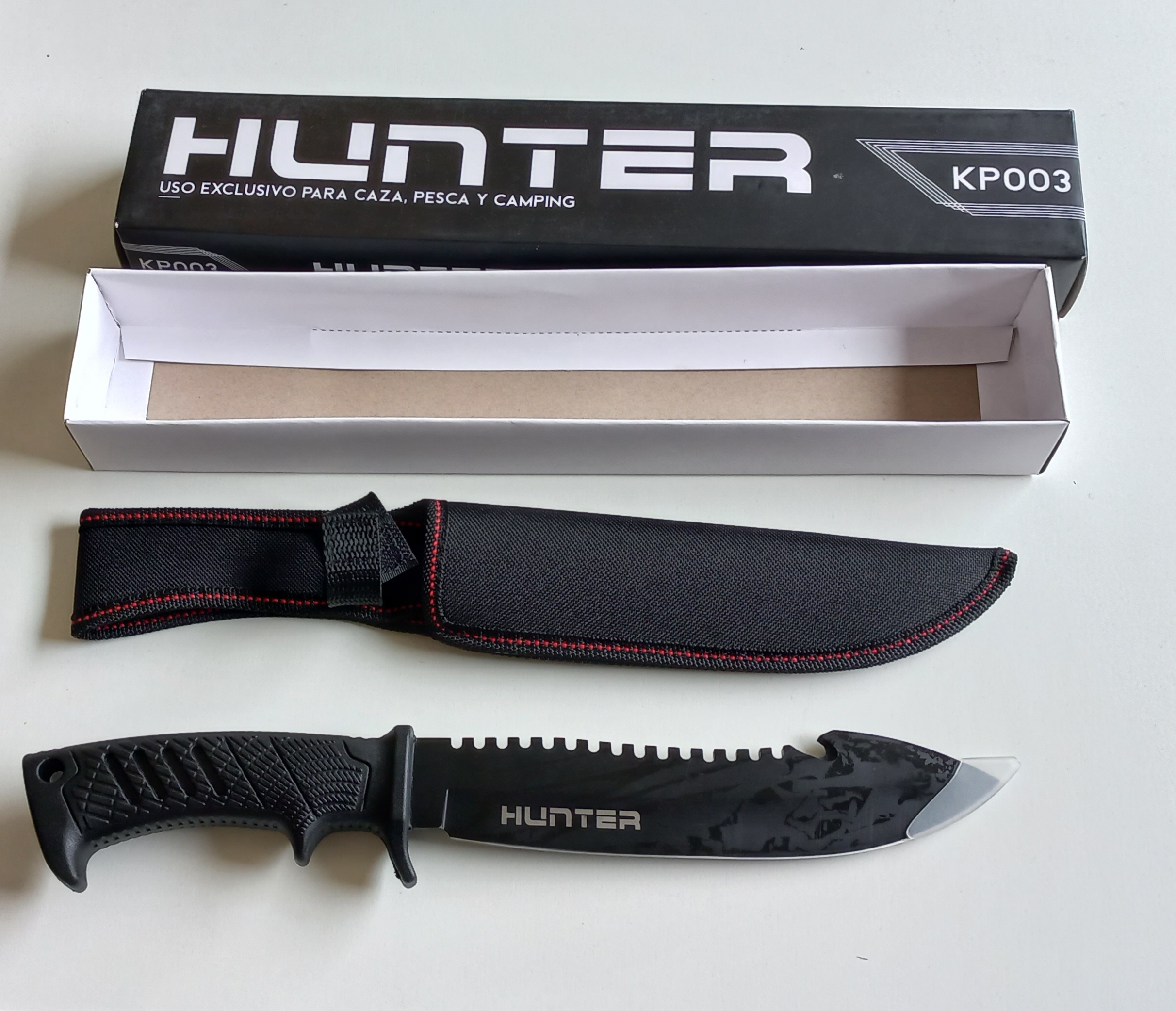 Cuchillo Hunter Negro Acero inoxidable 420C.-Hoja 190x 4mm-mango 125mm Caja/Funda KP003