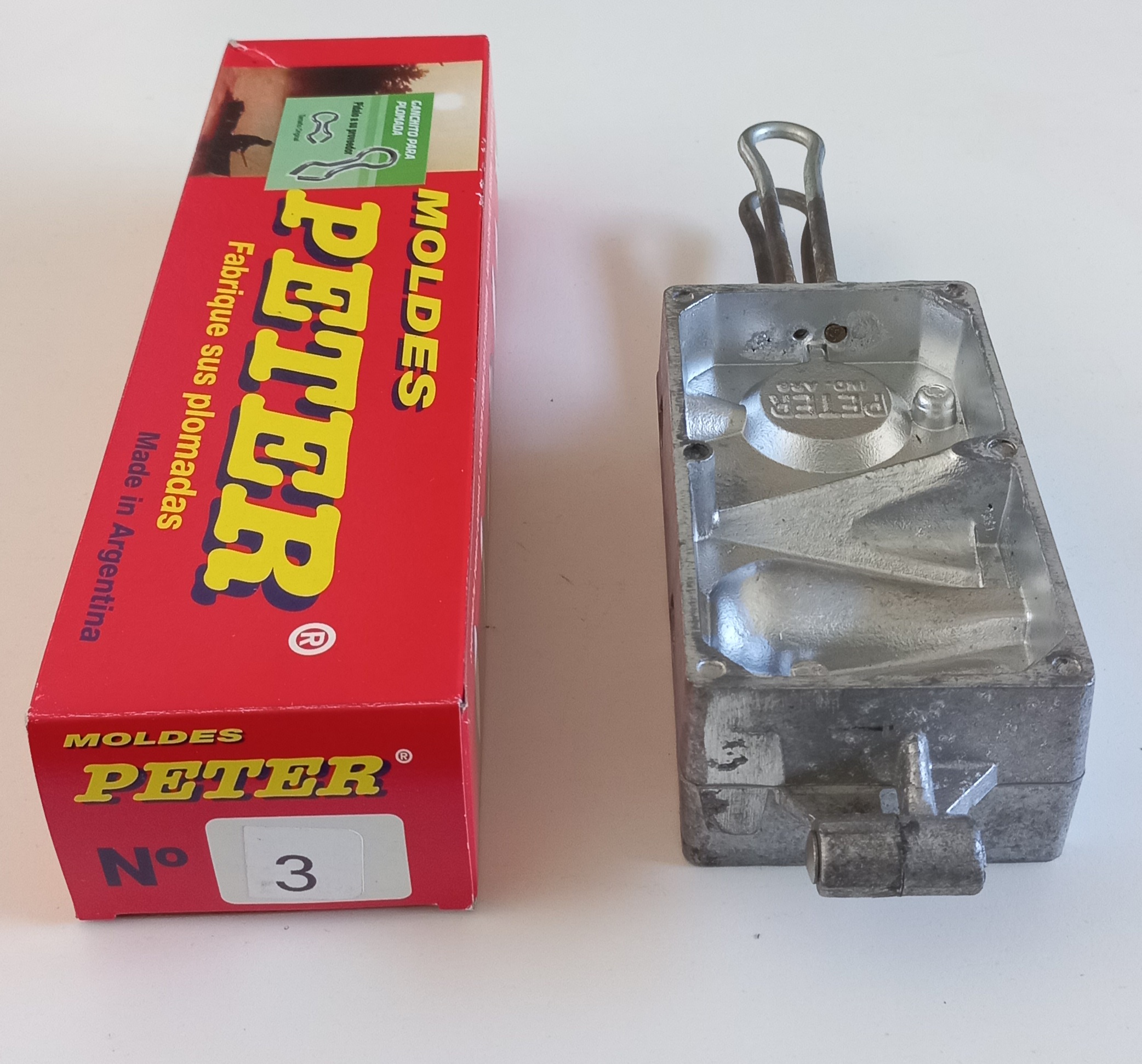 Molde Peter para plomada N°3. Pera 25gr- Reloj 110gr- Pirámide Hueca 140gr- Pera 150gr.